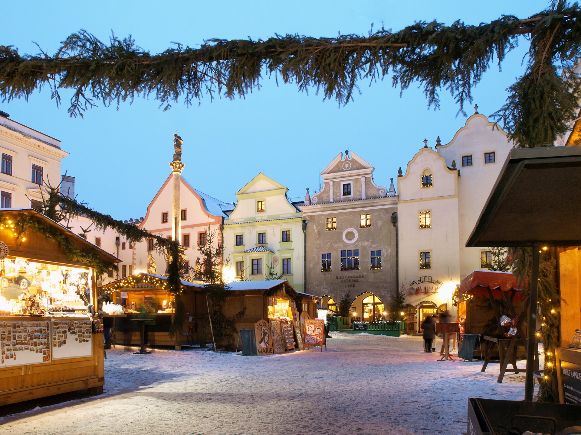 Nyd julecharmen i hovedstaden i Sydbøhmen.