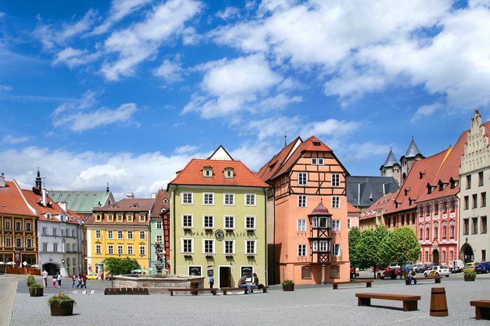 Rejsen nærmer sig sin afslutning i Cheb, en af de ældste byer i Tjekkiet, beliggende tæt på den tyske grænse. Cheb adskiller sig tydeligt fra kurbyerne med sit mere rå og autentiske byliv og sin stærke historiske identitet. Byens centrum er Náměstí Krále Jiřího z Poděbrad, hvor de farverige middelalderhuse står tæt side om side og giver torvet en helt særlig karakter. Over byen rejser Cheb Slot sig, en imponerende borg med romansk kapel og det karakteristiske sorte tårn, som vidner om byens strategiske betydning gennem århundrederne. Cheb er ideel til en afsluttende historisk vandring, inden turen går videre mod den sidste by på ruten.