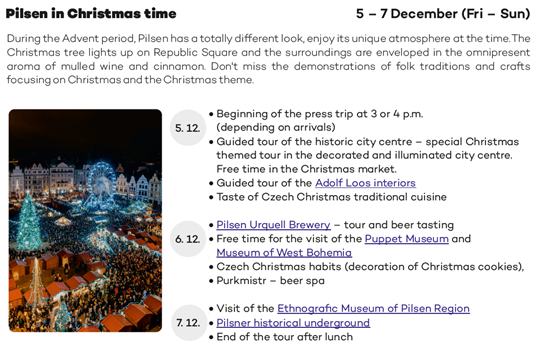Die Stadt und Region Pilsen lädt zu folgenden Pressereisen ein: