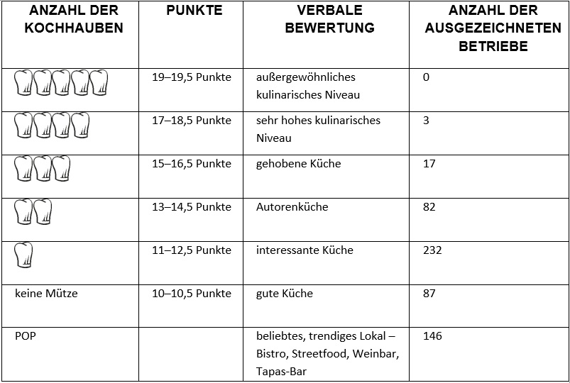 ➡️ 334 Betriebe mit Punktewertung und mindestens einer Haube