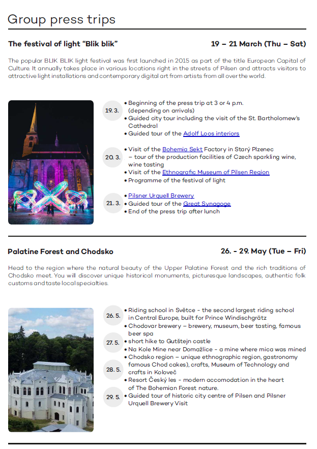 Overview Press Trips to Pilsen & Pilsen Region 2026