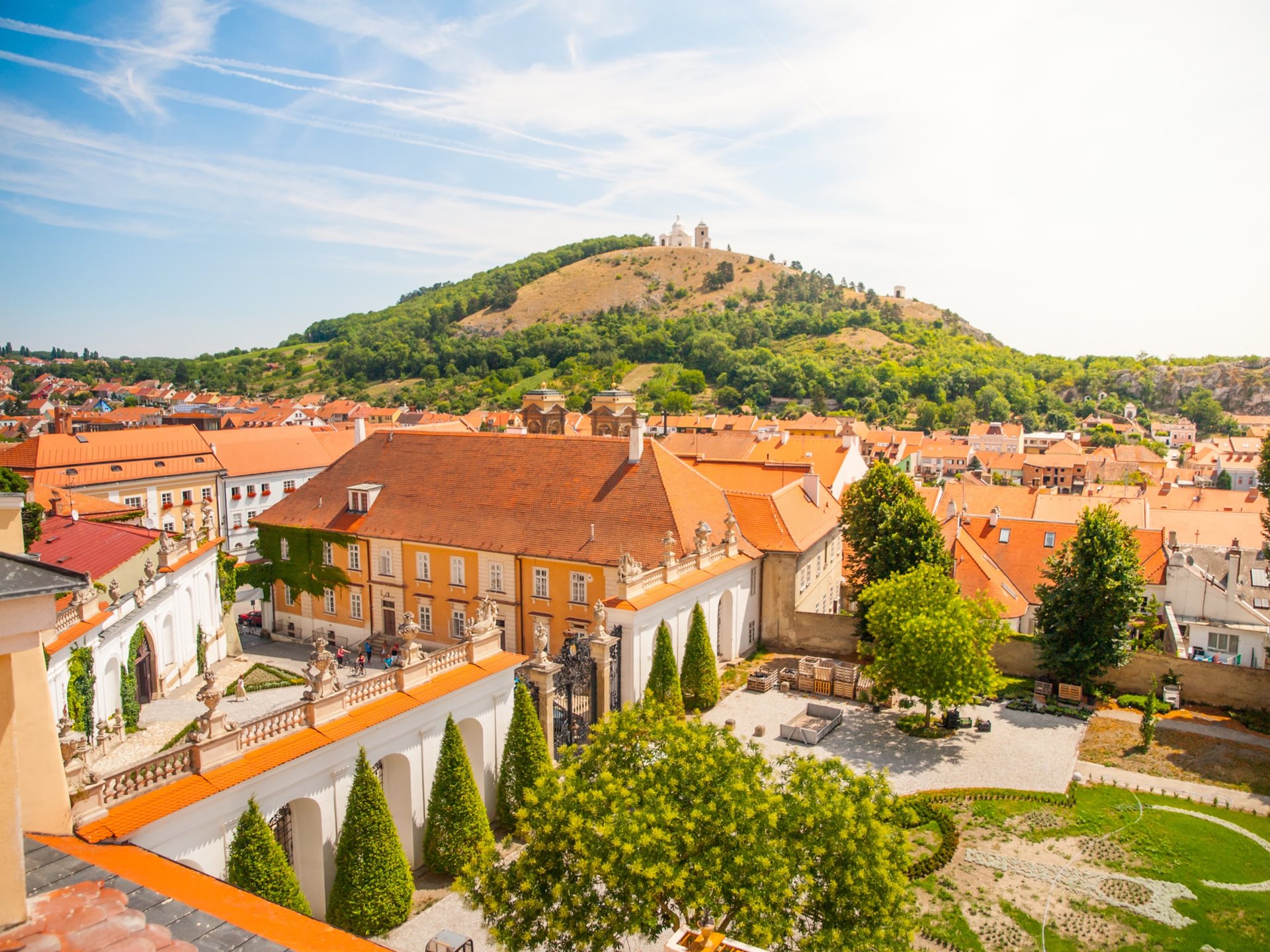 For the last day of the route we have booked a visit to the town of Mikulov, even it could be scheduled for the day before because it is only 14 kilometers from Valtice. This historic town, which is immersed in a beautiful landscape of vineyards and whitish-colored rocks, looks like something out of a romantic postcard. Despite its secluded size, it holds secrets worth discovering, such as the majestic Tomb of the Lords of Ditrichštejn, whose chapel houses an image of a black virgin. From the terrace of the tomb, moreover, you can admire a magnificent panoramic view. And if you like the view, continue the walk to the Holy Hill, one of the oldest pilgrimage sites in the country and from where you also get nice views of Mikulov.