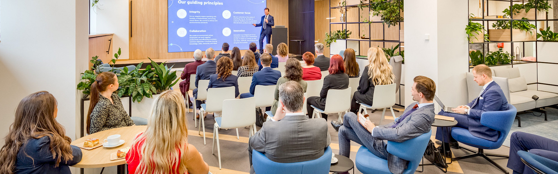 FLEKSI is a meeting place, it provides you with exceptional spaces for one-time and long-term use for negotiations and meetings with business partners, clients or within the company. The representative meeting rooms are equipped with the most modern AV technology with intuitive controls. The receptionist will welcome you and your guests in the premises, offer selected drinks or provide refreshments based on prior communication.