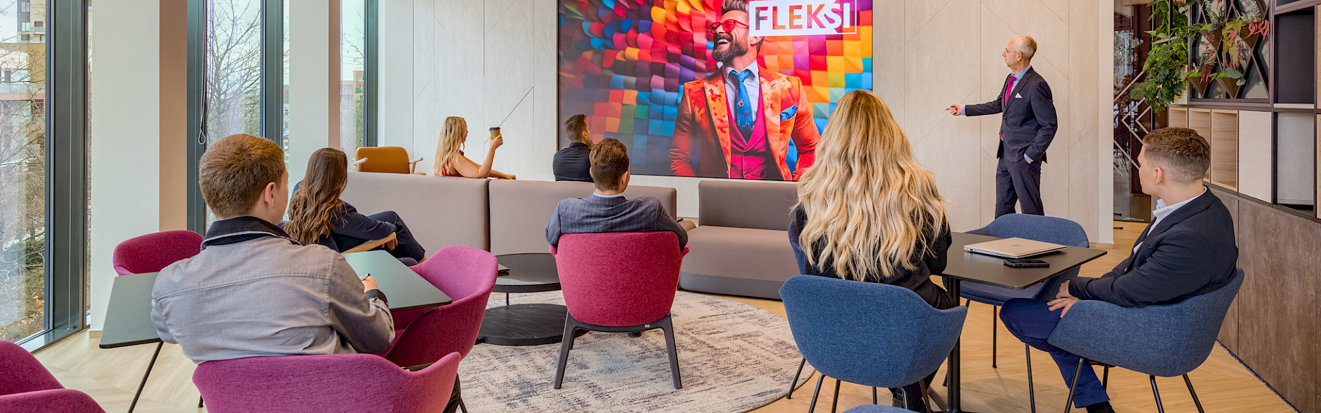 FLEKSI space in the iconic Filadelfia building, located in the lucrative Brumlovka district of Prague, offers you private offices, meeting and coworking spaces. Representative rooms and state-of-the-art AV technology with intuitive controls directly invite you to organize a company party, conference or workshop. Upon arrival, the receptionist will welcome you and your guests, offer you selected drinks and prepare refreshments based on prior arrangement.