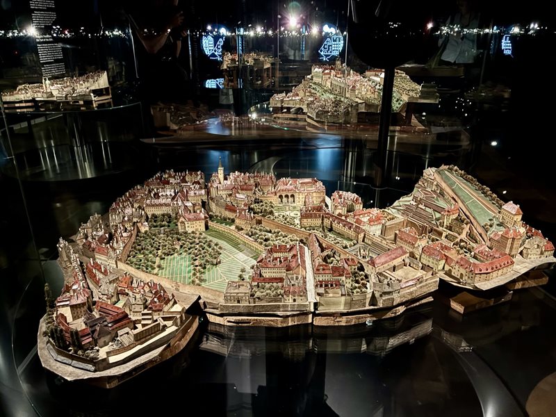 Il cuore della mostra è un tesoro culturale nazionale: il Modello di Praga di Langweil, realizzato a mano in cartone da Antonín Langweil, dipendente della Biblioteca Universitaria Klementinum. Il plastico, recentemente sistemato in 12 teche, rivela dettagli un tempo impossibili da vedere: piccoli cortili, gallerie in legno e angoli della Praga storica da tempo perduti, tra cui il Castello di Praga, il Ponte Carlo e la Piazza della Città Vecchia con il suo famoso Orologio Astronomico.
