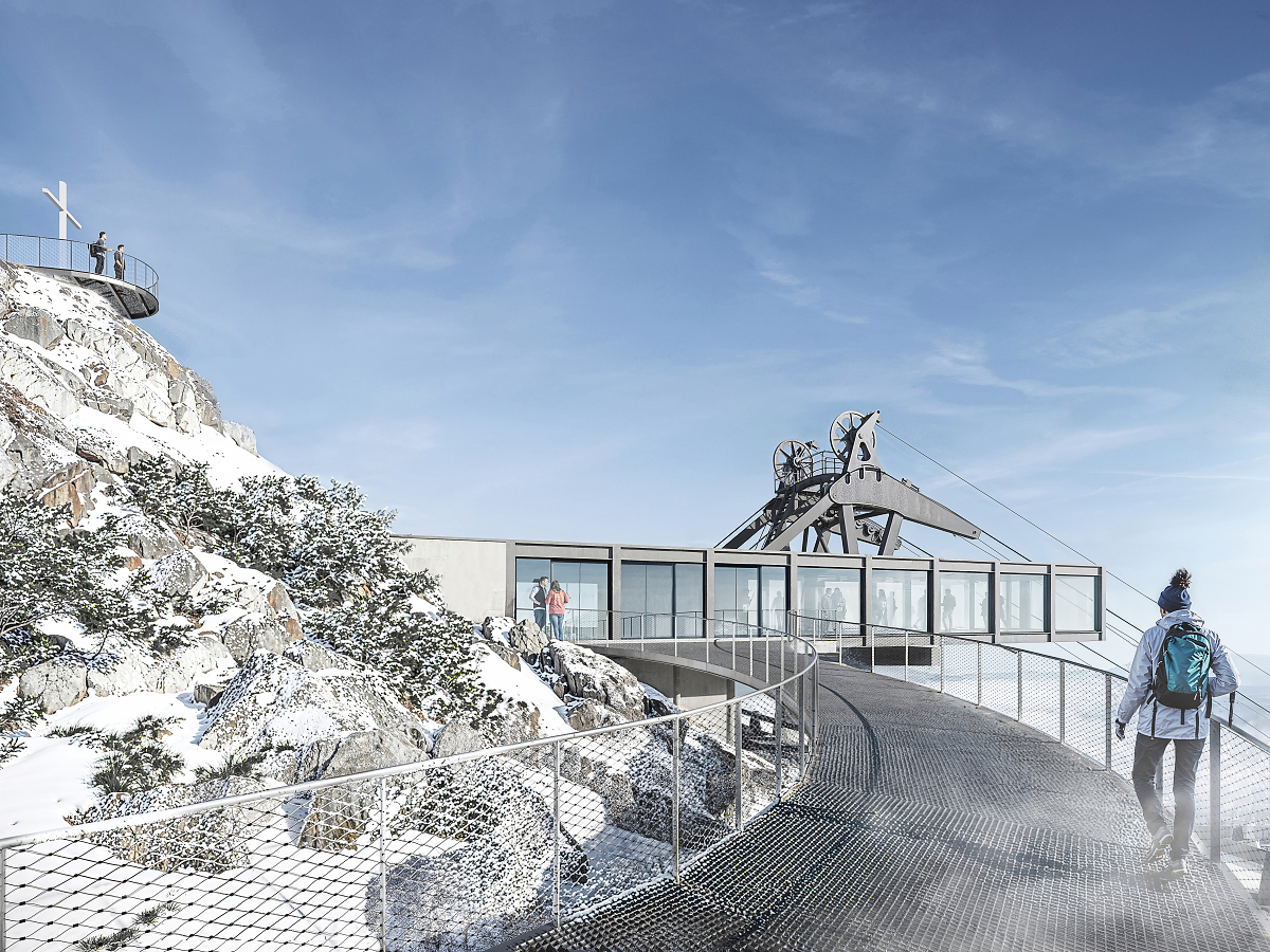「上站」(山頂站)極度壓縮了作業空間,並將纜車技術設施直接裸露呈現。同時,設計也考量到了實際需求,特別是擴建現有規格不足的道路,好讓消防車能順利抵達飯店與電視塔。成果會是一座變小、變輕盈的建築,這讓山頂的視野變得更開闊,不再被笨重的車站擋住視線。